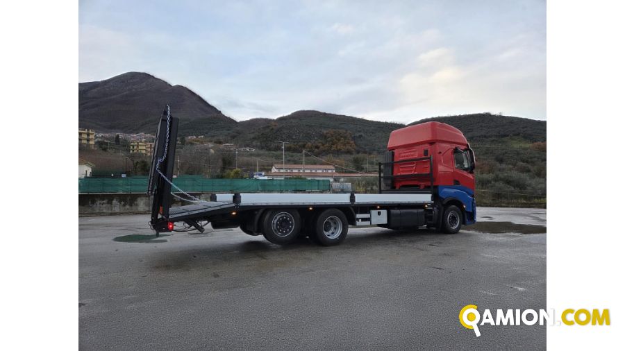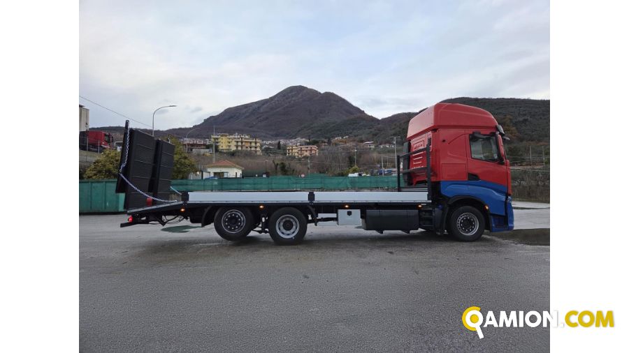 DESCRIZIONE – autocarro in ottime condizioni generali, con pianale con rampe di carico nuovo, 3 assi, 6x2, euro 6D, cambio automatico, sospensioni full pneumatiche, bloccaggio differenziale, navigatore, retarder, ABS, ESP, clima