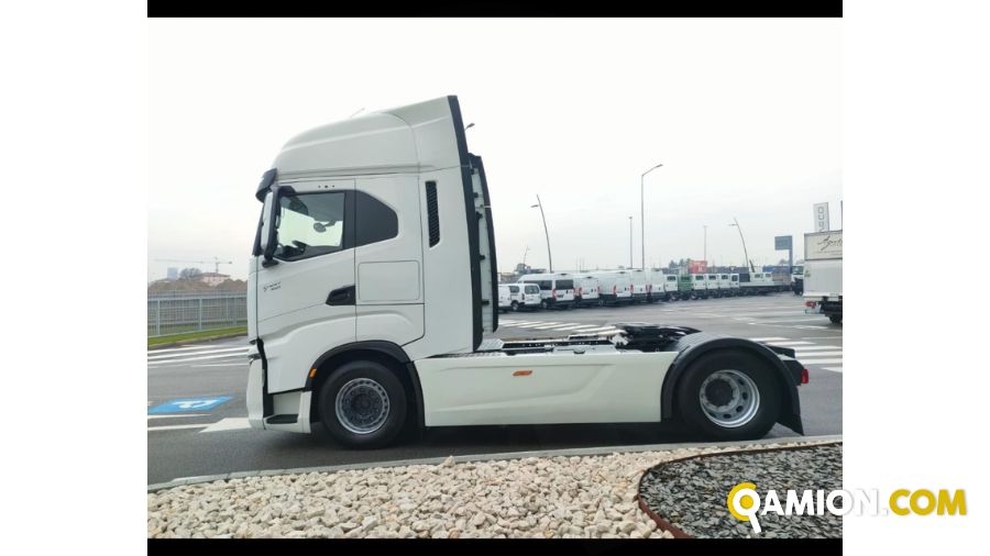 TRATTORE IVECO S-WAY AS440S53T/P, Prim.immatricolazione 5/2022 km403.385 Passo 3790mm , Rapporto al Ponte 2.64, Normativa inquinamento EURO 6, Motore con 526cv/387kw / 12.882cc,Sicurezza A.D.R., Cambio automatico, Rallentatore idraulico intarder, Bloccaggio differenziale, Ive-connect con schermo 7 pollici e navigatore, 2 serbatoi lato dx 710lt e sx 530lt , Cruise control, Climatizzatore automatico, Raffrescatore da fermo, Vetri e specchietti elettrici, Safety lock, Cerchi in ferro, Frigorifero + cassettone termico, Sospensione pneumatica Posteriore, Sedile guida gran comfort riscaldato/raffrescato, Visiera ,Webasto Due letti ,tromba monotonale dietro calandra , Spoiler e deflettori, neumatici 385/55R22.5
